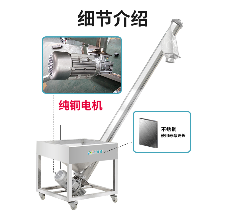 主要用于輸送粉狀、顆粒狀和小塊物料,可與旋振篩配套,用來給料,但它不易輸送變質(zhì)的粘性大的和易結(jié)塊的物料。螺旋上料機(jī)結(jié)構(gòu)簡單,橫截面積小,操作方便,維修容易。