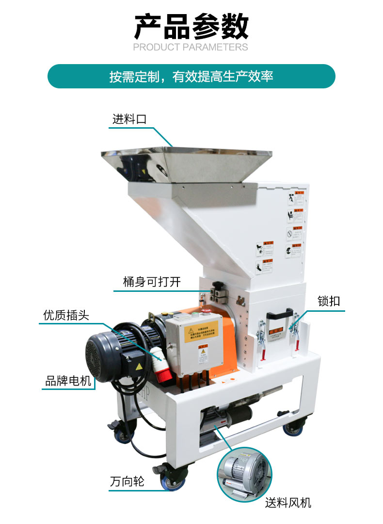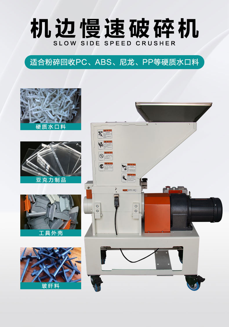慢速機邊破碎機,這款設(shè)備采用SKD-11加厚刀片,配備純銅電機和雙層降噪機身,粉碎均勻、低噪音。慢速機邊破碎機,機身上還配有可視化窗口和安全卡扣,使用更方便。