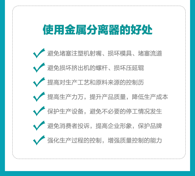 為了注塑制品的品質(zhì),很多制造商決定使用金屬分離器,來排除混入的金屬雜質(zhì)。而我們的金屬分離器就是這個領域的一股新力量。