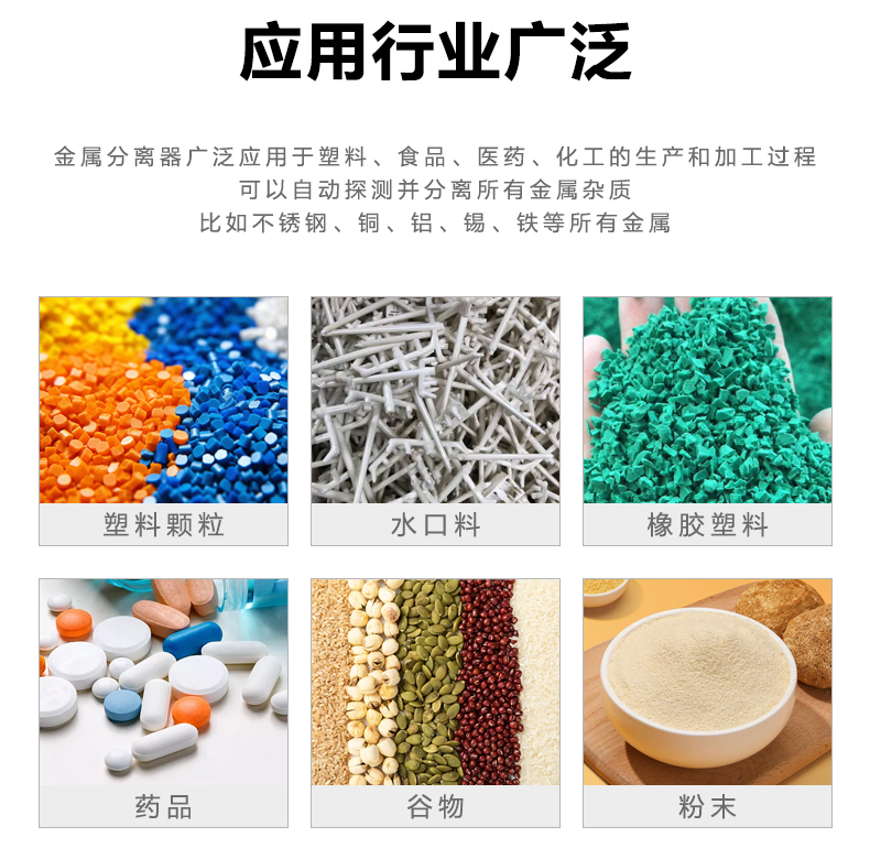 我們的金屬分離器適用于注塑制品廠、注塑機、造粒、塑料破碎等領域,幫助用戶快速分離各種金屬雜質(zhì)。設備非常靈敏,性能穩(wěn)定,能讓您工作更省心。